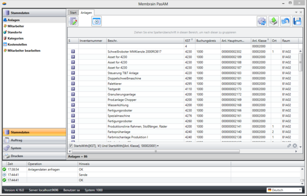 With the asset inventory browser for SAP, you create your orders according to cost centers or rooms, etc. This instance maps the printing of paper lists for carrying out the asset inventory from SAP and replaces it with a completely paperless process without media discontinuity in SAP. MembrainPAS-AM also generates an order that can later be displayed in the console, edited and posted to SAP with the last inventory date, etc.